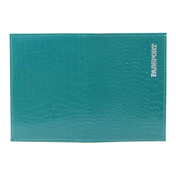 Обложка для паспорта "PASSPORT" нат.кожа, тисн.серебро, бирюзовый 1,01гр-КРОКОДИЛ-231 Imige