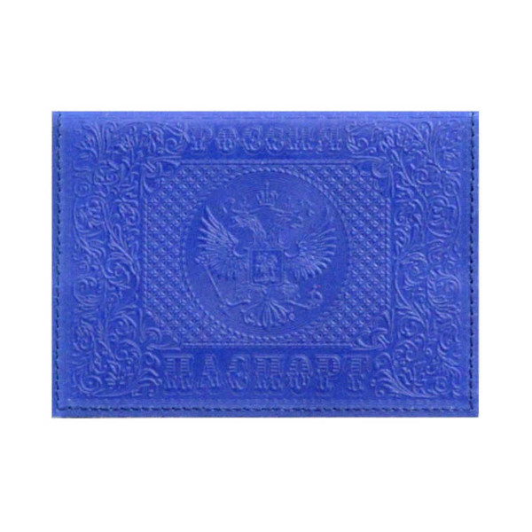 Обложка для паспорта "РОССИЯ-ПАСПОРТ-ГЕРБ" нат.кожа, тиснение блинтовое, синий 1,12г-203 Imige
