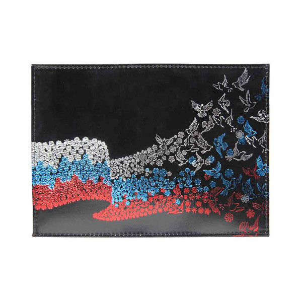 Обложка для паспорта нат. кожа, черный, теснен. три цвета "Летящий Флаг" 1,2-056-211-0