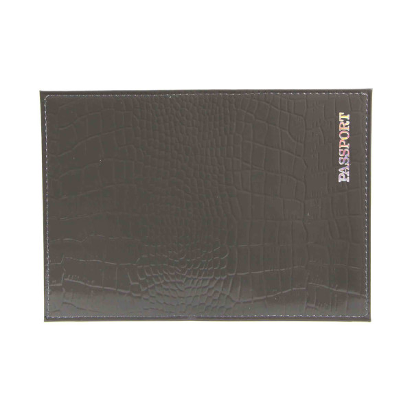 Обложка для паспорта "PASSPORT" нат.кожа, тисн.серебро, серый, 1,01гр-КРОКОДИЛ-239 Imige