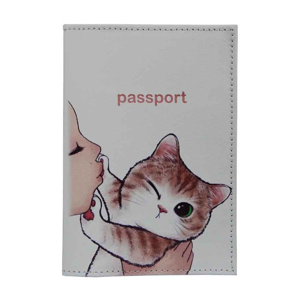 Обложка для паспорта натур. кожа, цветной рисунок "Попался" 1,2-086-0