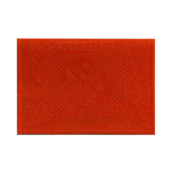 Обложка для паспорта "РОССИЯ-ПАСПОРТ-ГЕРБ" нат.кожа, тиснение блинтовое, красный 1,12г-201 Imige