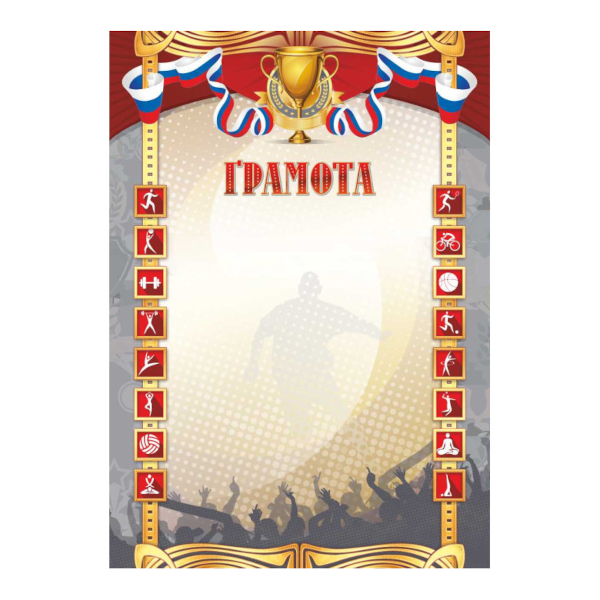 Бланк "Грамота" спортивная с Росиийской символикой, стандарт, бумага 200г/м2 2695 Квадра