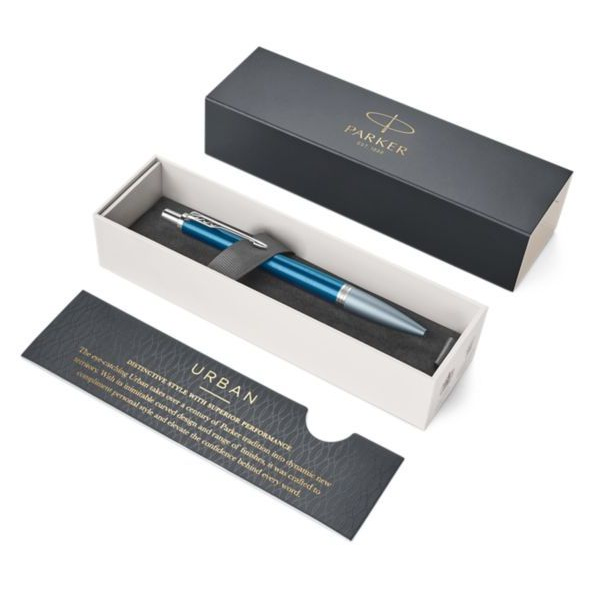 Ручка шар PARKER "Urban Premium Dark Blue CT" синяя, голуб. алюм. корп., хром. отд. 1мм 1931565