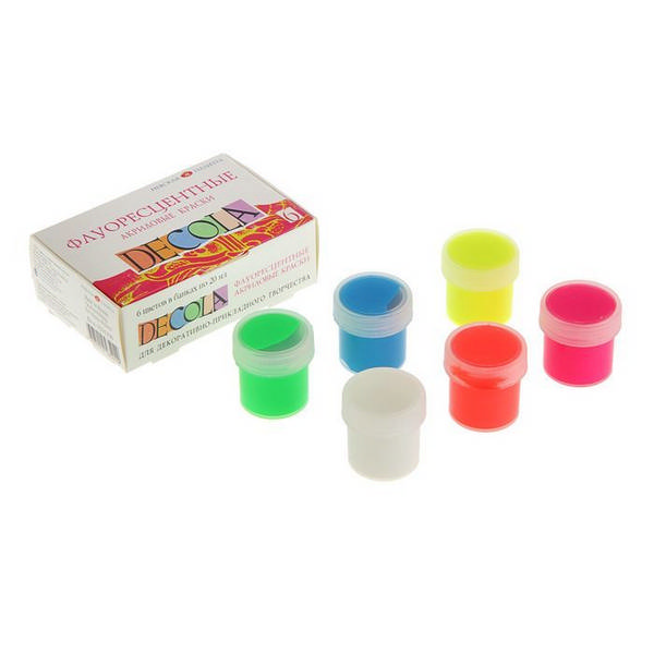 Краски акриловые Невская Палитра "Decola" 6цв, 20мл в банке, флуоресцентный,карт.уп. 4341100