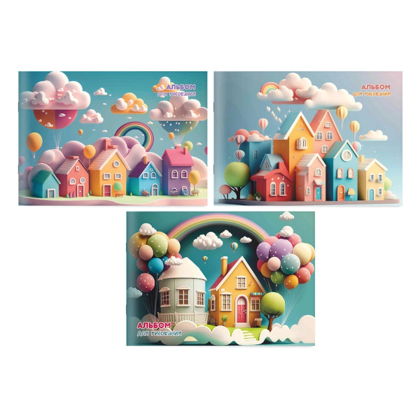 Альбом для рис 12л А5 "Сказочные домики" 100г/м2, скоба, ассорти 68851-S Lamark