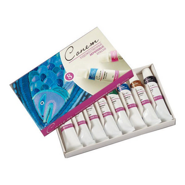 Краски акриловые Невская палитра "Сонет" 8цв, 10мл в тубе, карт.уп. 2841096