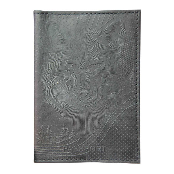 Обложка для автодокументов "Волк" нат.кожа, черный, сплош.тисн. 5,2-073-211-0 Imige