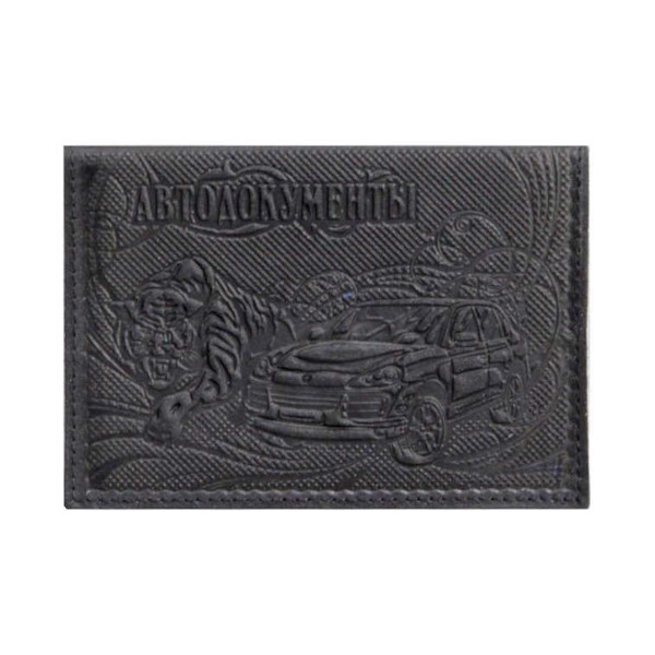 Обложка для автодокументов "АВТО" черный, нат. кожа с тиснением 5,12-211 Imige
