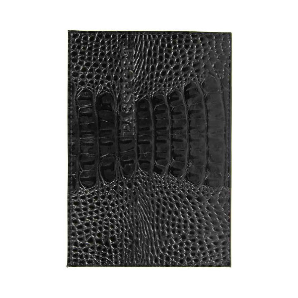 Обложка для паспорта "PASSPORT" нат.кожа, тиснение, черный 1,03гр-КРОКО-211 Imige