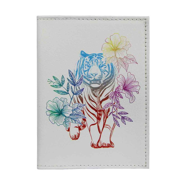Обложка для паспорта натур. кожа, цветной рисунок "Радужный тигр" 1,2-082-0