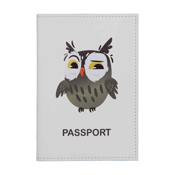 Обложка для паспорта натур. кожа, цветной рисунок "Совунья" 1,2-090-0
