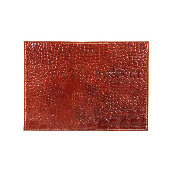 Обложка для паспорта "PASSPORT" нат.кожа, тиснение, коричневый 1,03гр-КРОКО-220 Imige