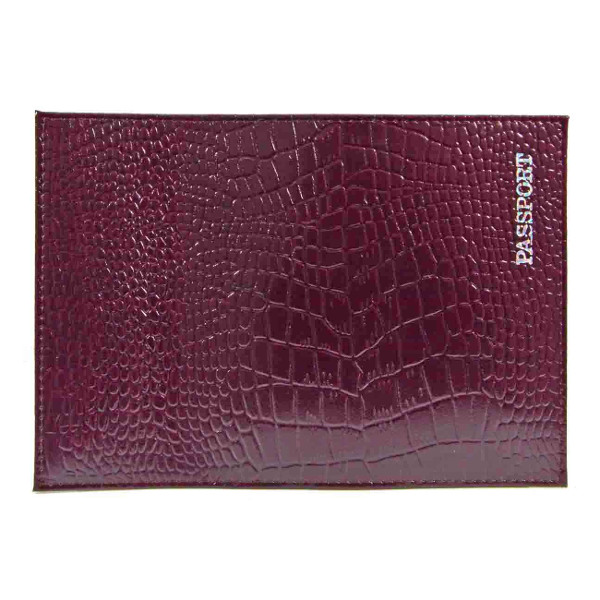 Обложка для паспорта "PASSPORT" нат.кожа, тиснение серебро, темно-фиолетовая 1,01гр-КРОКОДИЛ-230 Imige