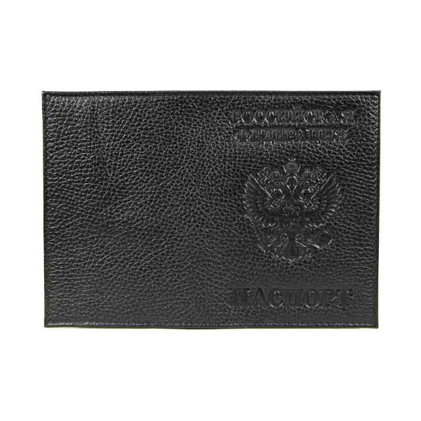 Обложка для паспорта "РОССИЯ-ПАСПОРТ-ГЕРБ" нат.кожа, тиснение, черный 1,01гр-ГЕРБ ФЛОТЕР-211 Imige