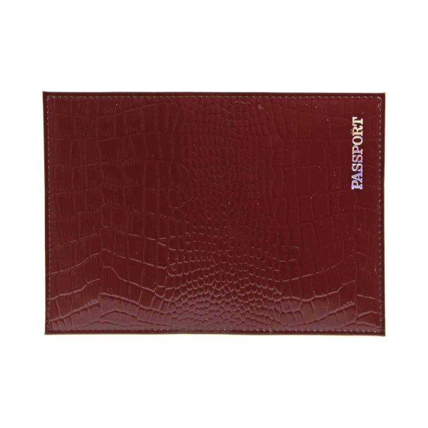 Обложка для паспорта "PASSPORT" нат.кожа, тисн.серебро, бордо, 1,01гр-КРОКОДИЛ-209 Imige