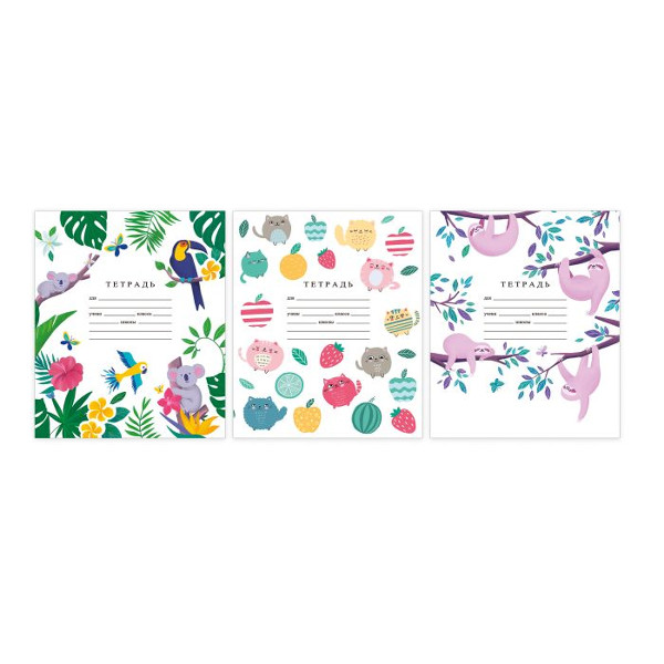 Набор обложек 220*350мм для тетради "Зверята" с рисунком, ПВХ 120мкм 51139/200 Феникс+ (3шт)