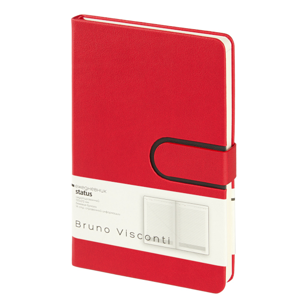 Ежедневник А5 не дат Bruno Visconti "Status" тв.обл., иск.кожа, красный, магнит. клапан 3-786/06