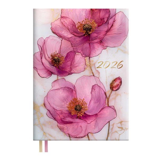 Ежедневник А6+ 2026 Escalada "Розовые маки" интегр. обл., иск.кожа, сшивка, рисунок 70308