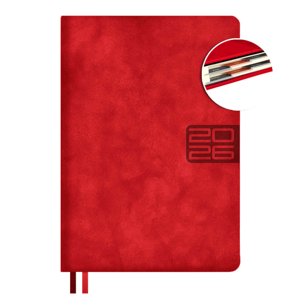 Ежедневник А5 2026 Escalada "#Думай как миллиардер" тв. обл., иск.кожа, сшивка, красный 70243