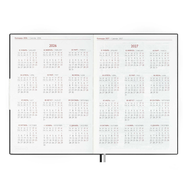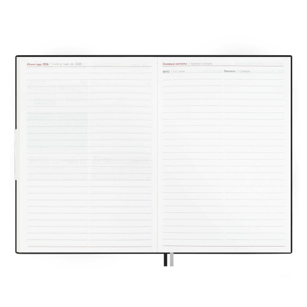 Еженедельник А6+ 2026 Escalada "Шеврет глосс" интегр.обл., иск.кожа, сшивка, черный 70341