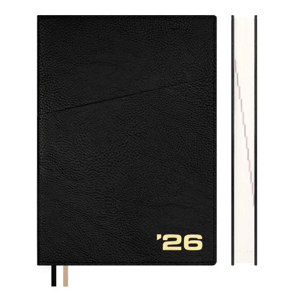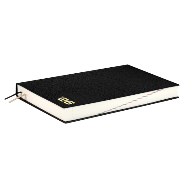 Ежедневник А5+ 2026г Escalada "Шеврет" интегр.обл., иск.кожа, сшивка, черный 70208