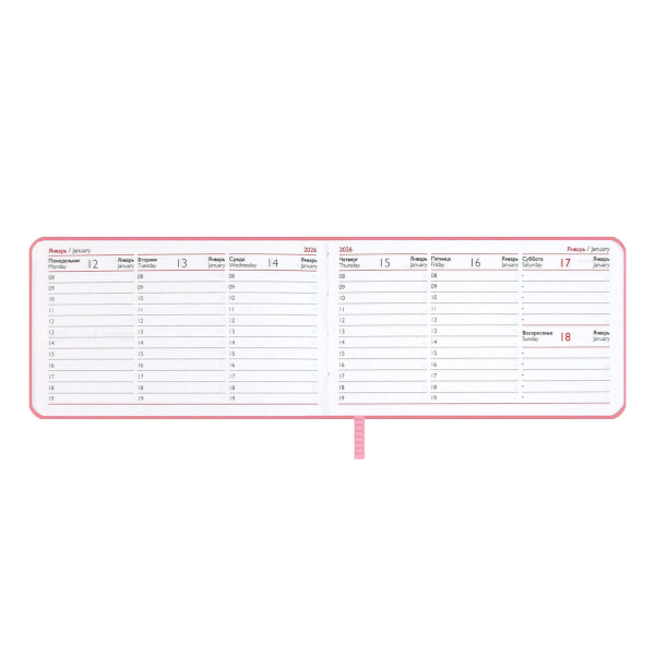 Еженедельник 87*150мм 2026 Escalada "Виннер" интегр.обл., иск.кожа, сшивка, розовый 70402