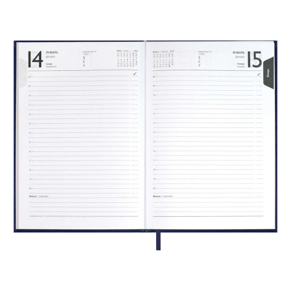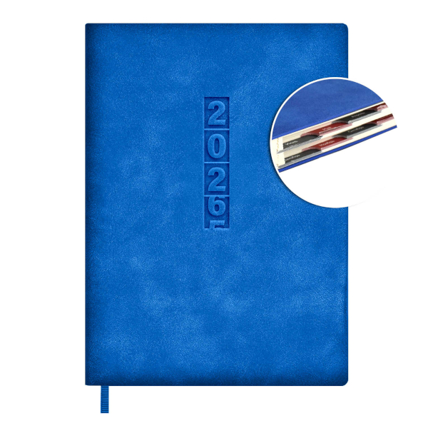 Ежедневник А6+ 2026 Escalada "Наппа" тв. обл., иск.кожа, сшивка, синий 70285