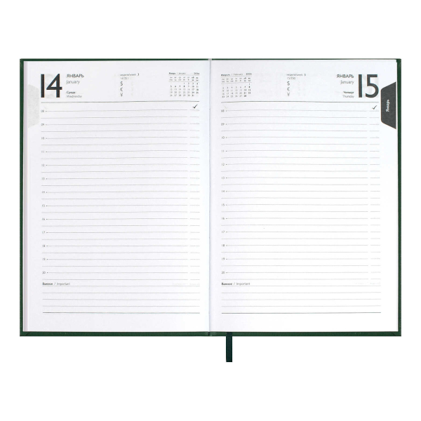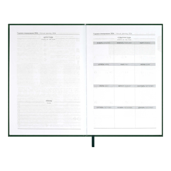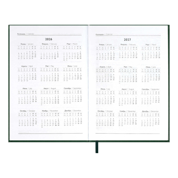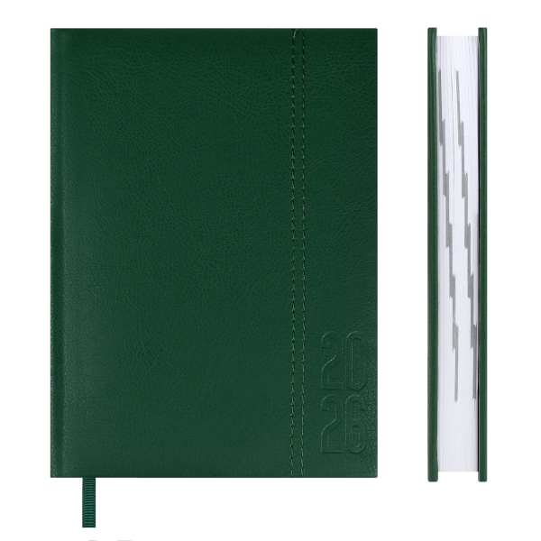 Ежедневник А6+ 2026 Escalada "Наппа" тв. обл., иск.кожа, сшивка, зеленый 70287