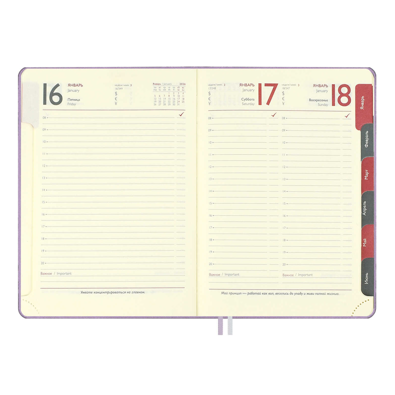 Ежедневник А6+ 2026 Escalada "#Думай как миллиардер" тв. обл., иск.кожа, сшивка, сиреневый 70296