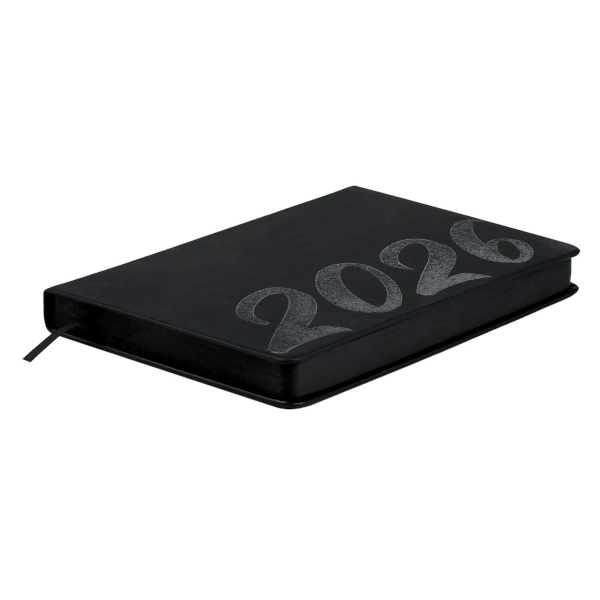 Ежедневник А5 2026 Escalada "Софт-тач" тв. обл., иск.кожа, сшивка, черный 70232