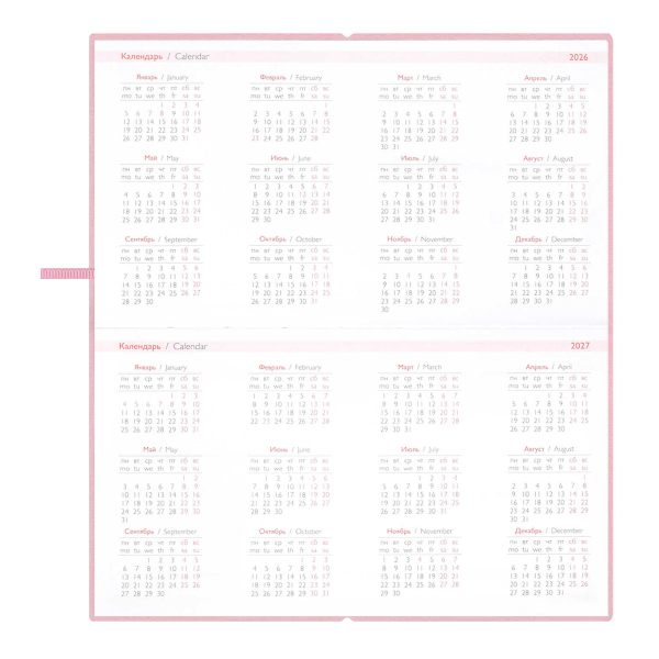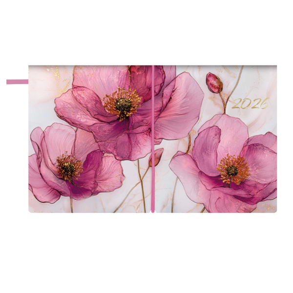 Еженедельник 105*175мм 2026 Escalada "Розовые маки" интегр.обл., иск.кожа, сшивка 70389