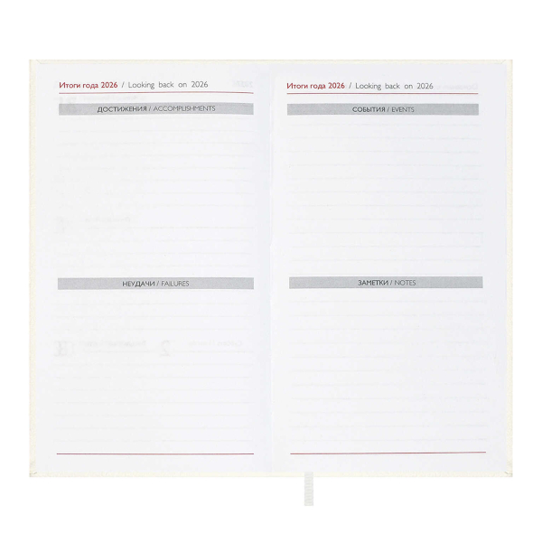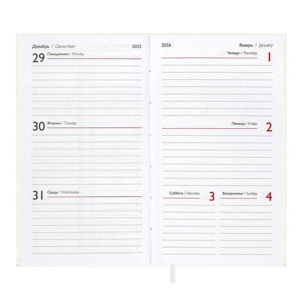 Еженедельник 85*145мм 2026 Escalada "Лозанж" тв.обл., иск.кожа, сшивка, белый 70358