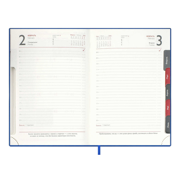 Ежедневник А6+ 2026 Escalada "#Думай как миллиардер" тв. обл., иск.кожа, сшивка, синий 70298