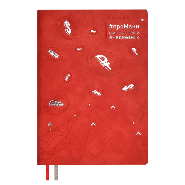 Ежедневник А5 не дат 320стр., Escalada "#проМани. Красный" интегр.обл., иск. кожа, рисунок 67262