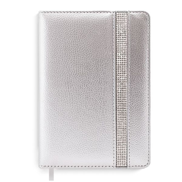 Ежедневник А6+ не дат., 320 стр., Феникс+ Наппа серебряный, тв.обл., лента из страз 50456/10