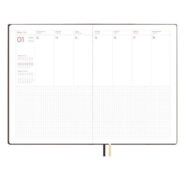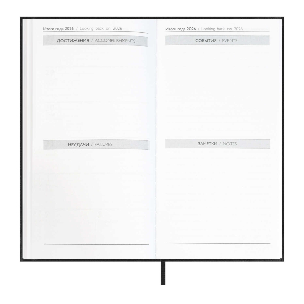 Еженедельник А6+ 2026 Escalada "Наппа" тв.обл., иск.кожа, сшивка, черный 70364