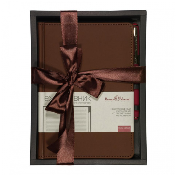 Набор подарочный Bruno Visconti "Velvet index" (ежед. А5, не дат, коричневый, ручка) 3-369/03-2