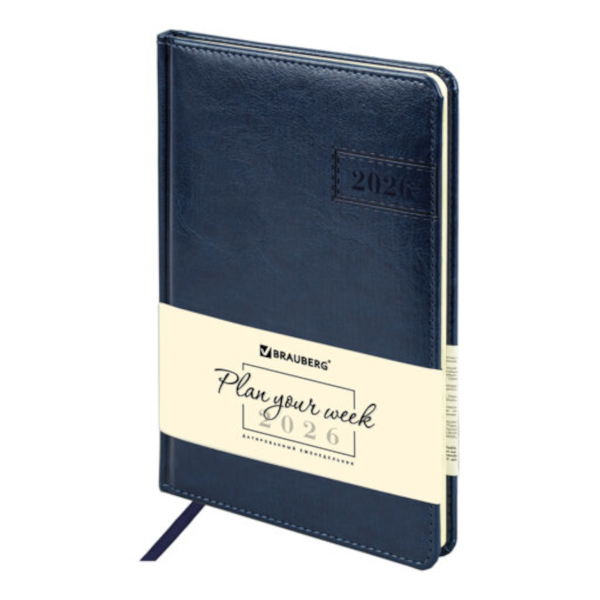 Еженедельник А5 2026 Brauberg "Imperial" тв.обл., иск.кожа, сшивка, синий 117174