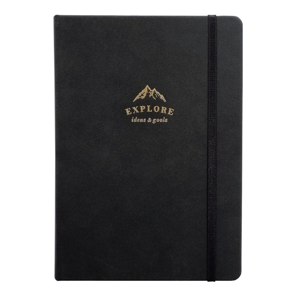 Ежедневник А5 2026 Infolio "Explore" тв.обл., иск.замша, сшивка, черный, резинка I1715/black