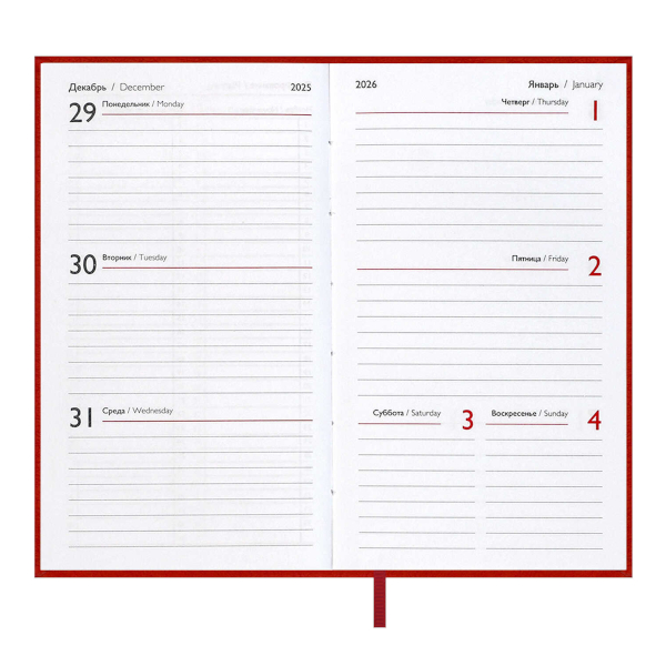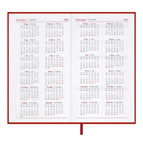 Еженедельник 85*145мм 2026 Escalada "Лозанж" тв.обл., иск.кожа, сшивка, красный 70357