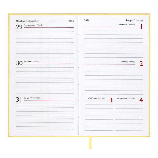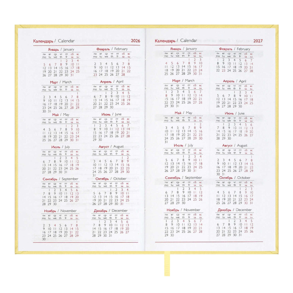 Еженедельник 85*145мм 2026 Escalada "Лозанж" тв.обл., иск.кожа, сшивка, желтый 70363