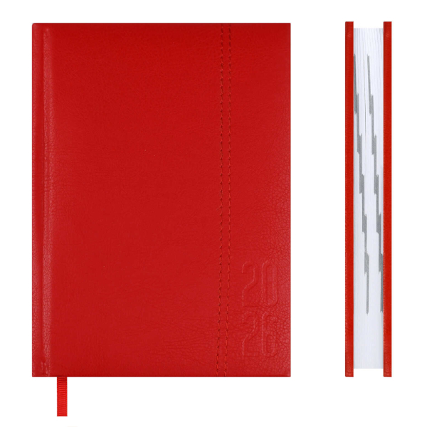 Ежедневник А6+ 2026 Escalada "Наппа" тв. обл., иск.кожа, сшивка, красный 70286