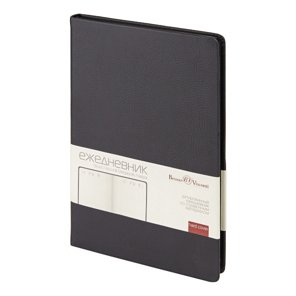 Ежедневник А5+ 2026 Bruno Visconti "Megapolis Nappa" тв. обл., иск. кожа, черный 3-806/06