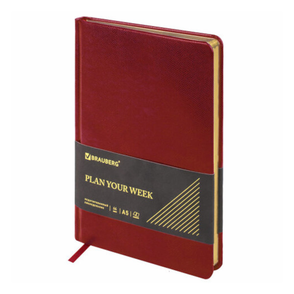 Еженедельник не дат А5 64л Brauberg "Iguana" под кожу, красный, золотой обрез 114477.