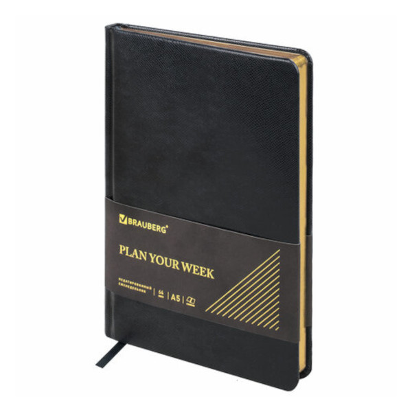 Еженедельник не дат А5 64л Brauberg "Iguana" под кожу, черный, золотой обрез 114478.