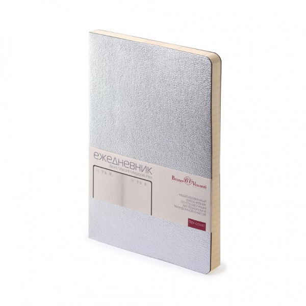 Ежедневник А6+ не дат., 320 стр., Феникс+ Наппа серебряный, тв.обл., лента из страз 50456/10