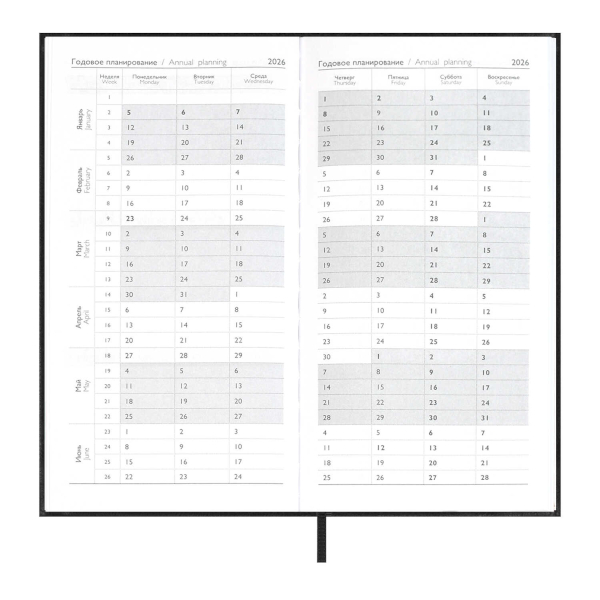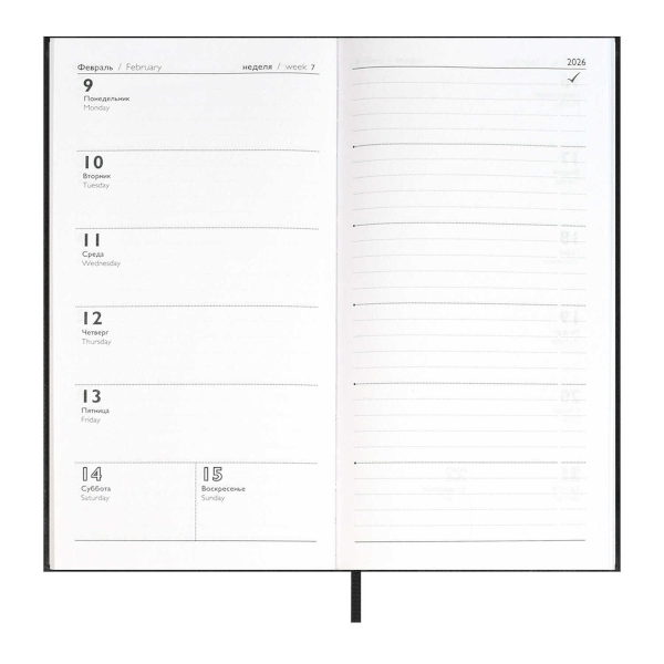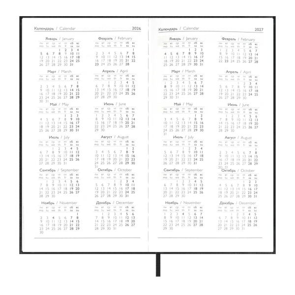 Еженедельник А6+ 2026 Escalada "Наппа" тв.обл., иск.кожа, сшивка, черный 70364