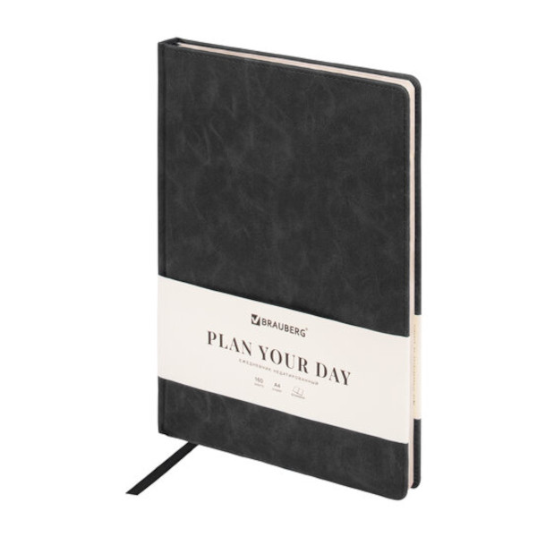 Ежедневник А5 не дат Brauberg 160л., бумвинил, черный 126540