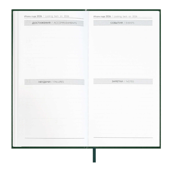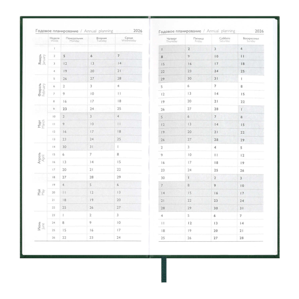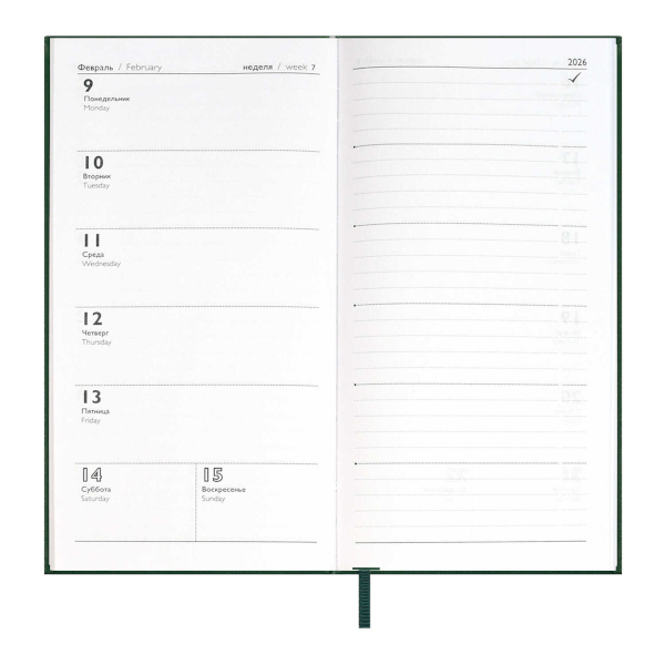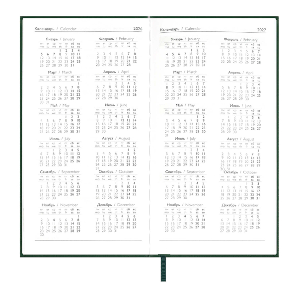 Еженедельник А6+ 2026 Escalada "Наппа" тв.обл., иск.кожа, сшивка, т.-зеленый 70368